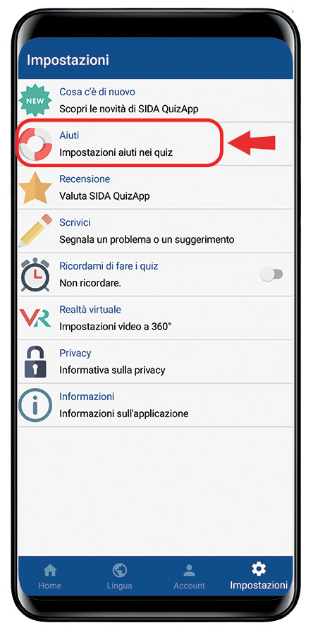 Nell'app di SIDA i candidati possono utilizzare la nuova funzione "aiuti" che permette di disattivare la visualizzazione delle immagini nelle esercitazioni per argomento.