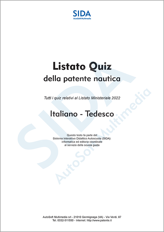 Infine, ricordiamo che nell'area personale del sito www.patente.it è disponibile gratuitamente (per i clienti SIDA) la pubblicazione con la traduzione completa in lingua tedesca del listato Nautica 2022.