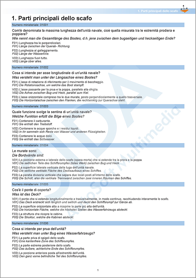 La traduzione è stata effettuata sia per il listato base, sia per il listato vela del corso patenti nautiche.
