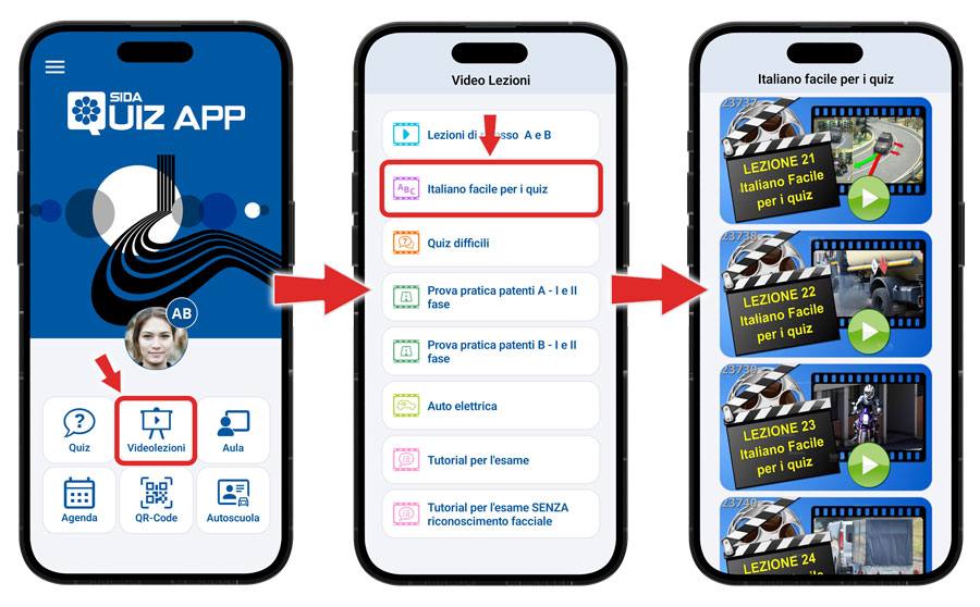 Le videolezioni sono pubblicate su SIDA Quiz App e Patenteonline, nella sezione "Videolezioni", "Italiano facile per i quiz".
