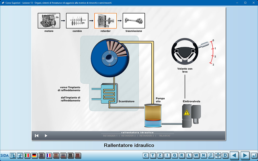 Abbiamo realizzato due nuove animazioni interattive relative a Freno motore e Rallentatore idraulico (lezione "Organi, sistemi di frenatura e di aggancio alla motrice di rimorchi e semirimorchi").