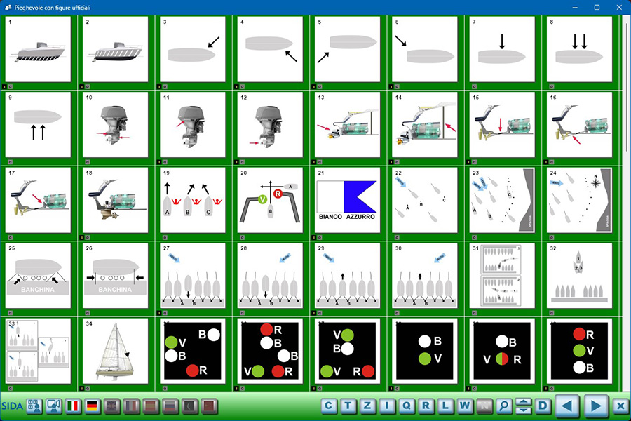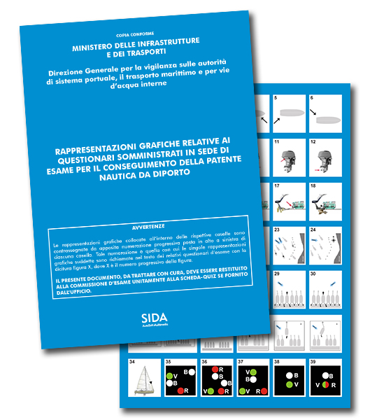 La numerazione delle immagini ministeriali, corrispondente con quella del pieghevole, è inserita nei moduli SIDA Aula, SIDA Quiz e nella Guida Rapida SIDA Nautica.